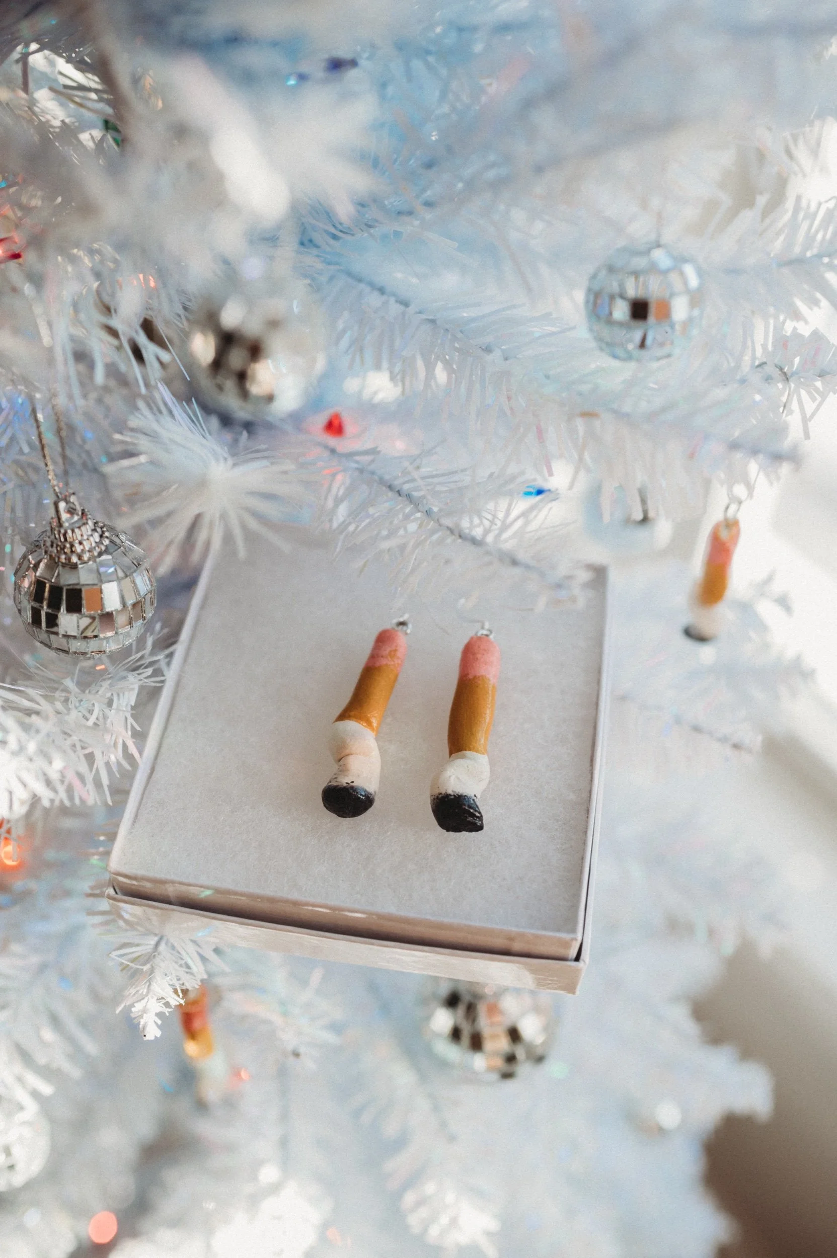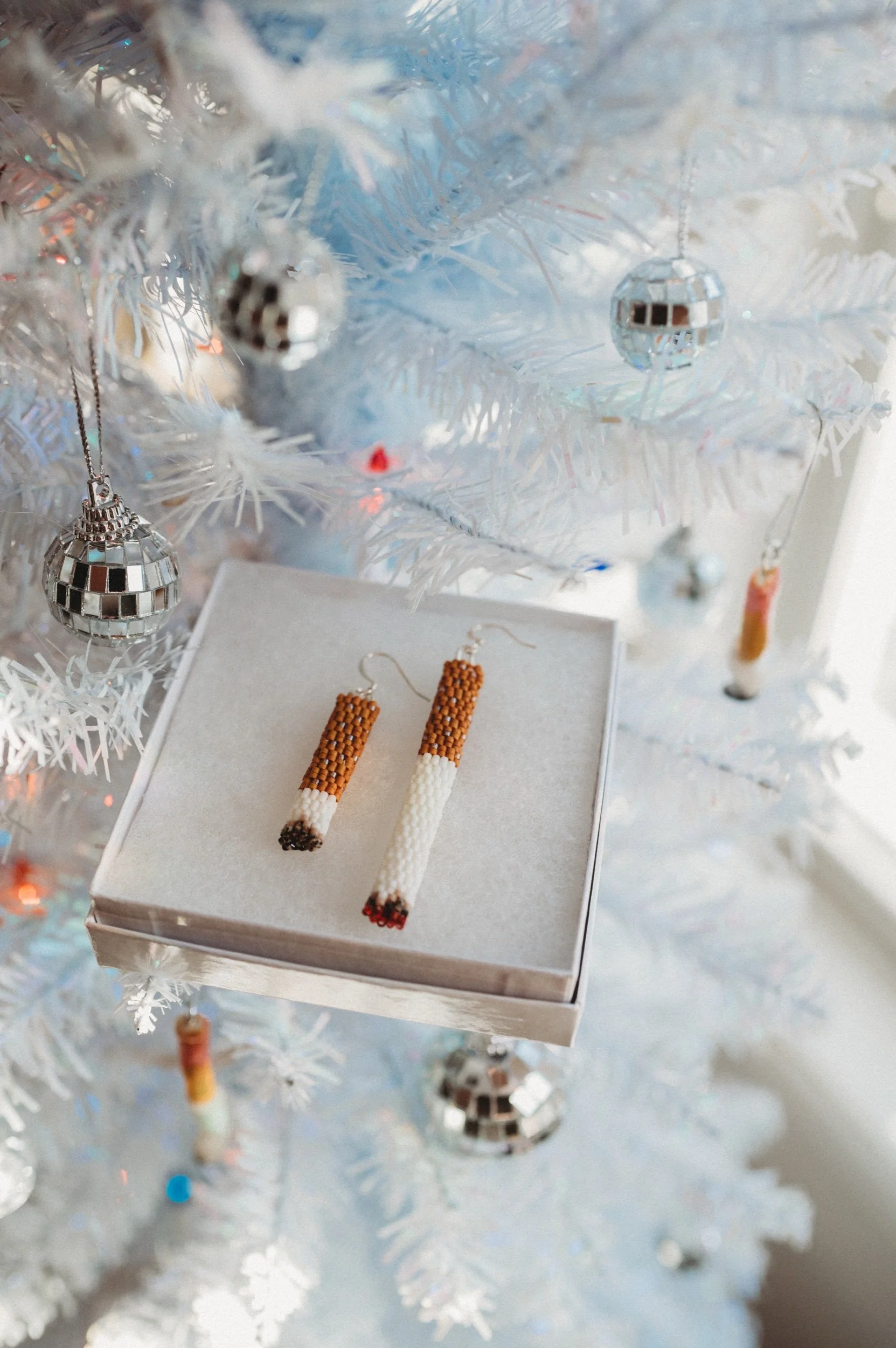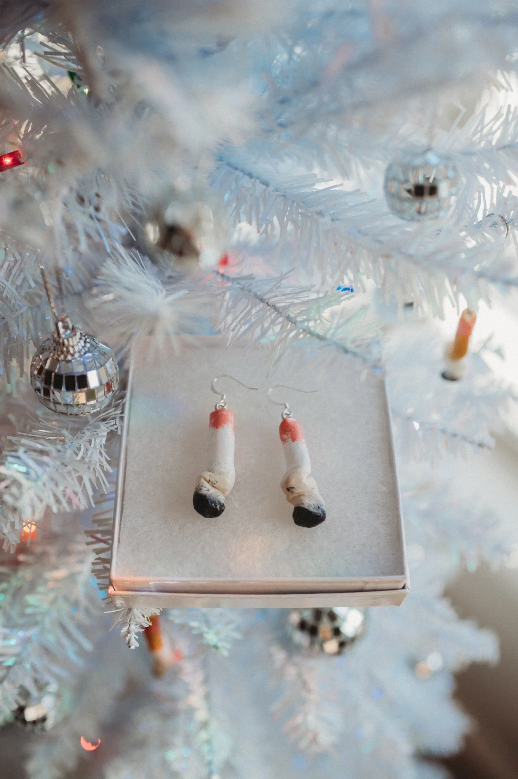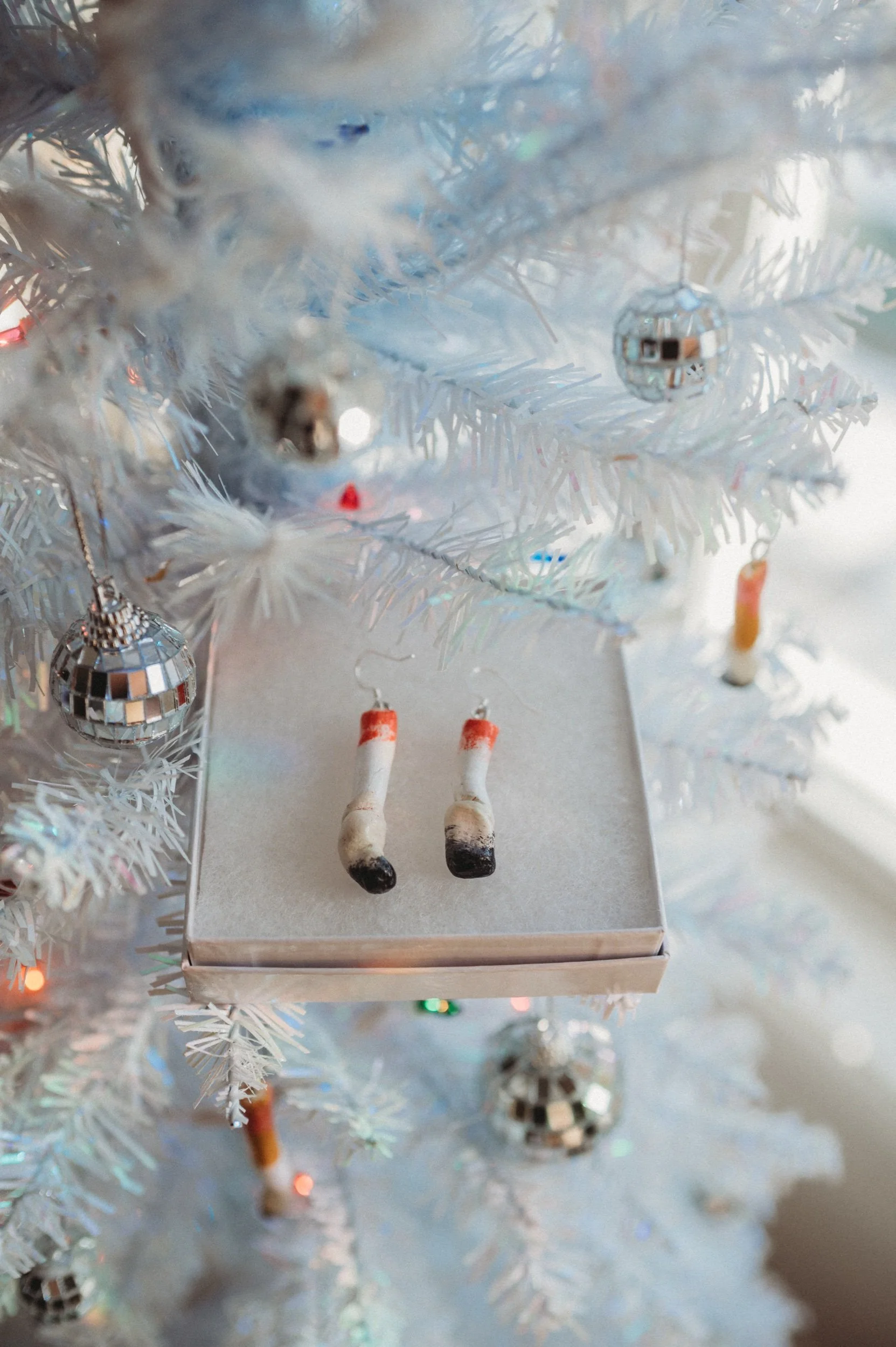Burnt Out Cigarette Earrings with Red Lipstick Stain