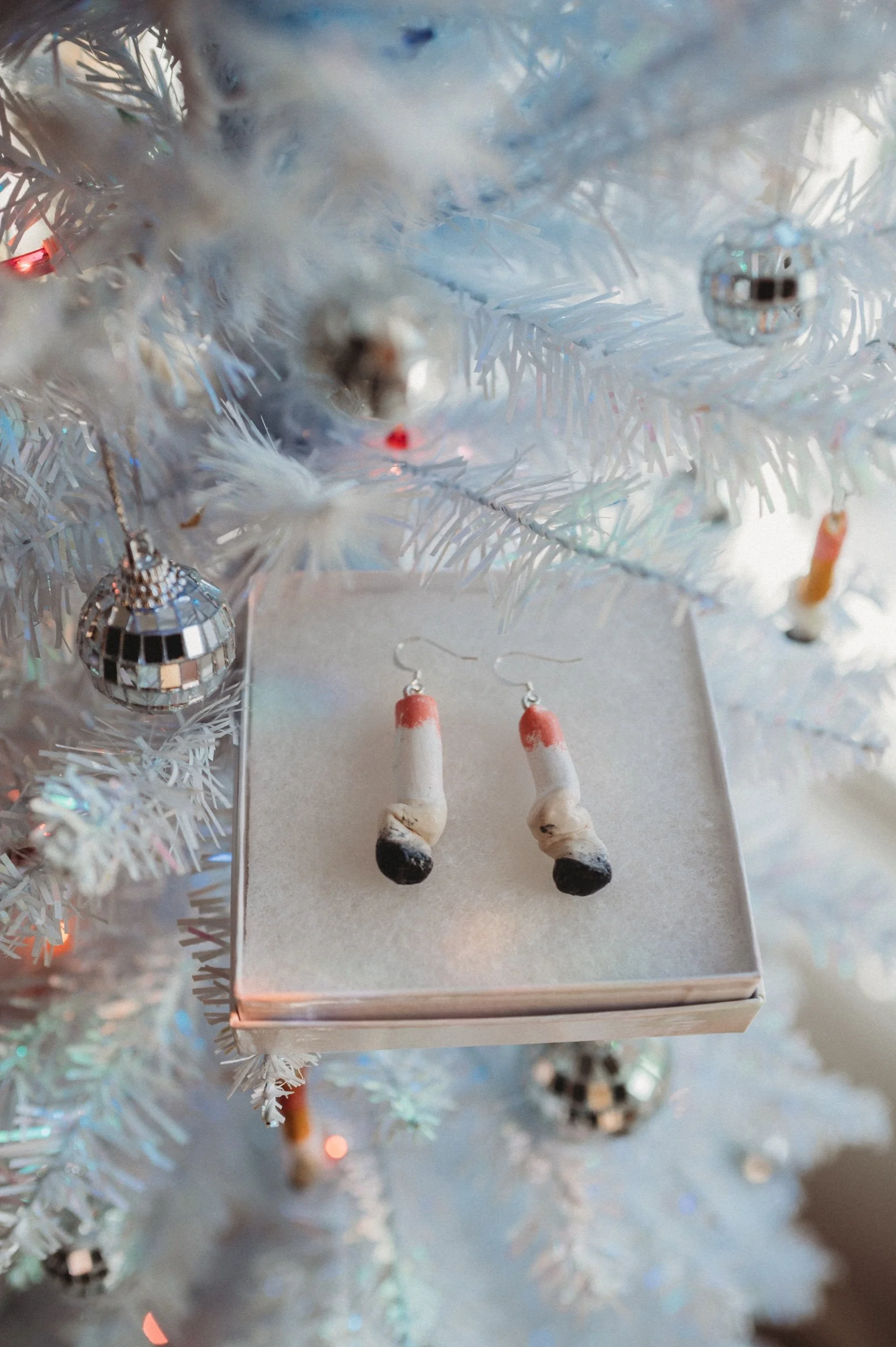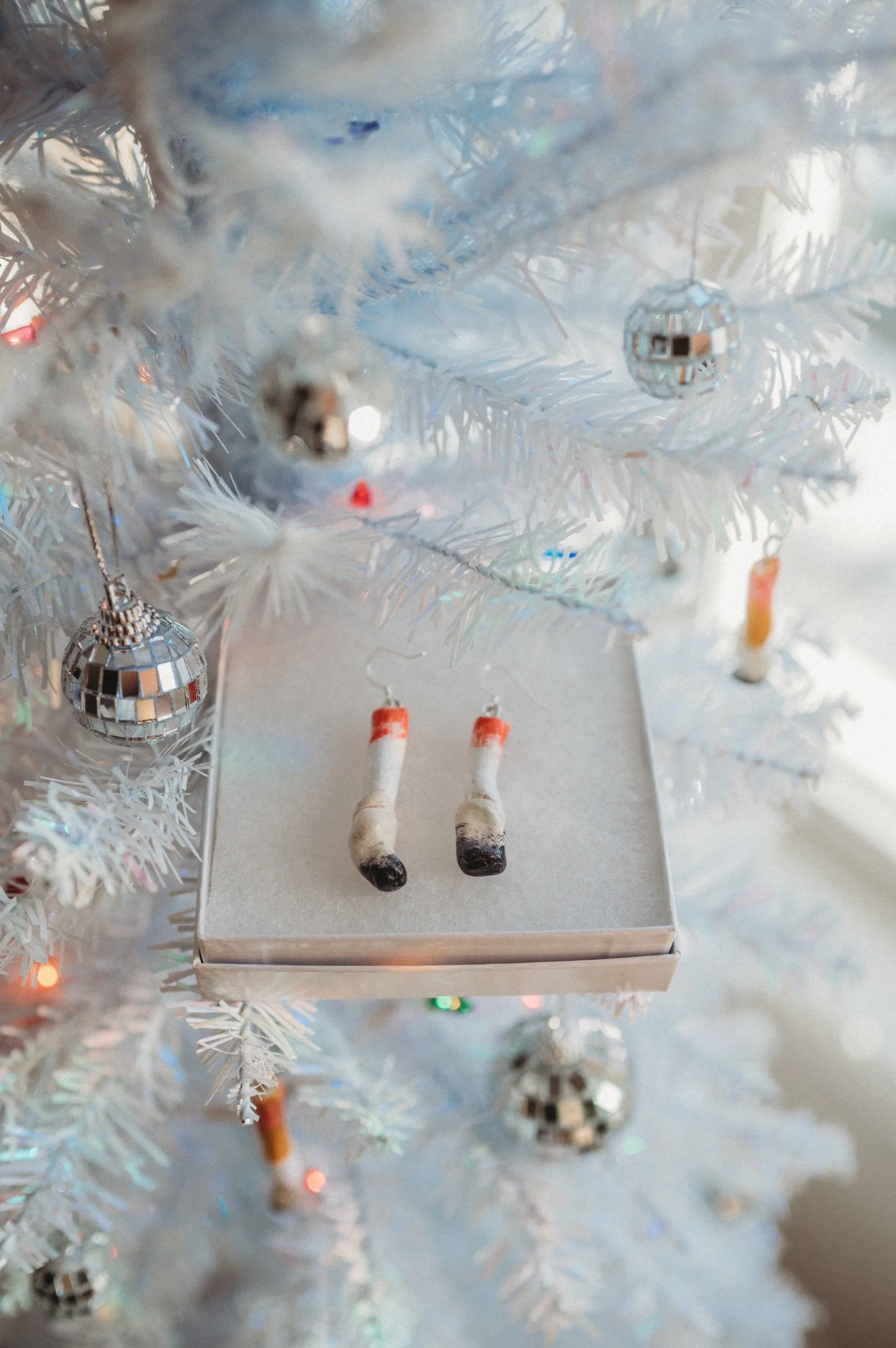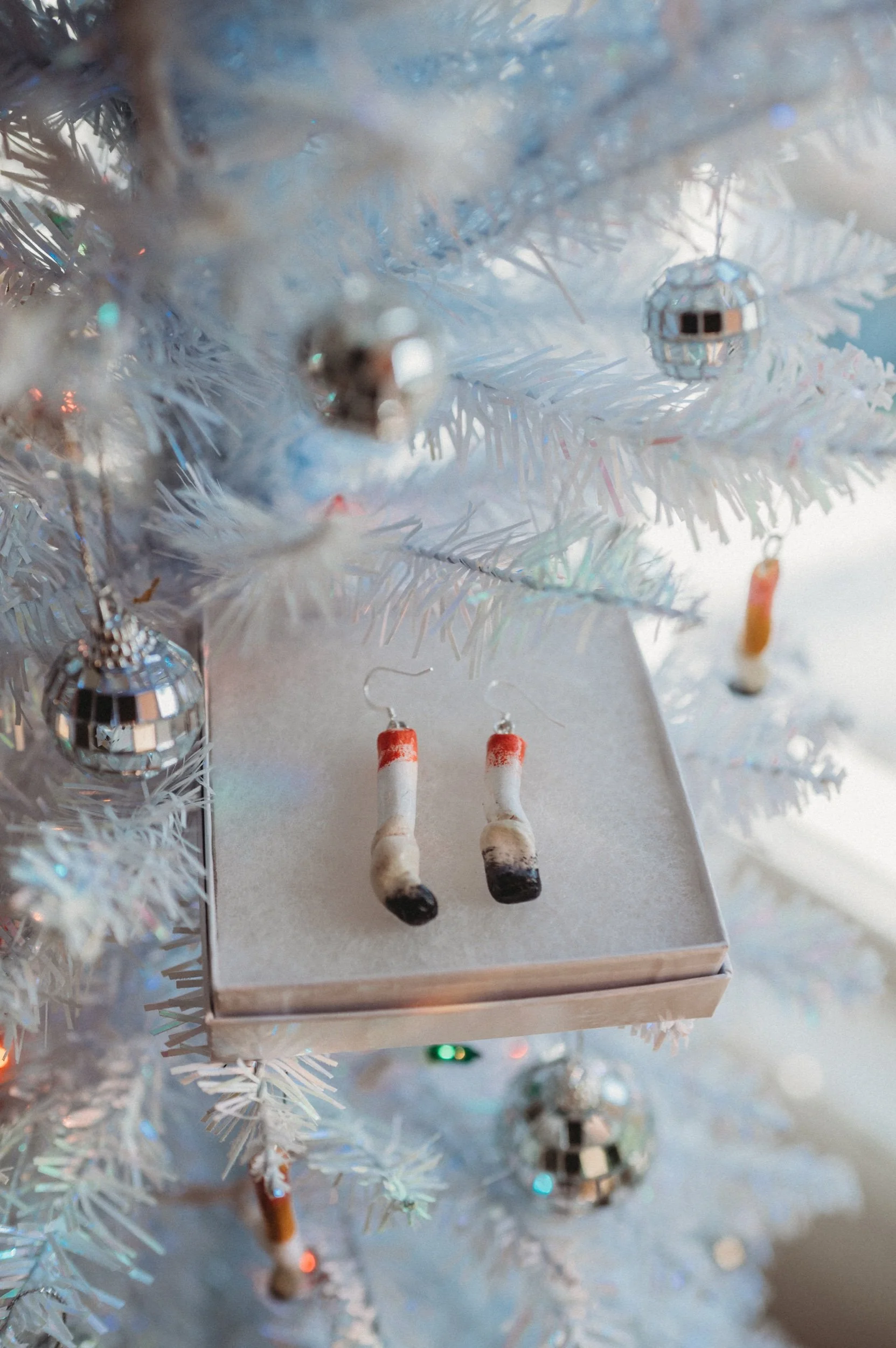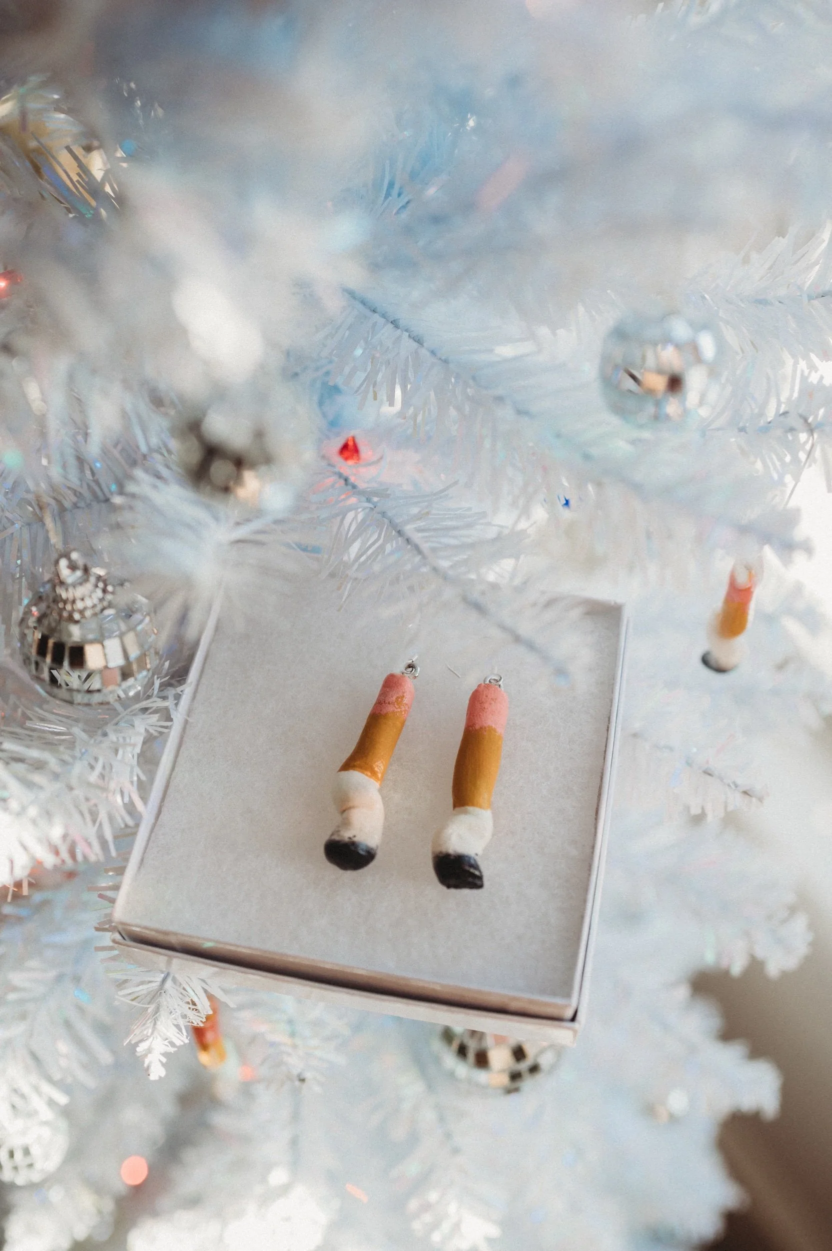 Burnt Out Cigarette Earrings with Red Lipstick Stain
