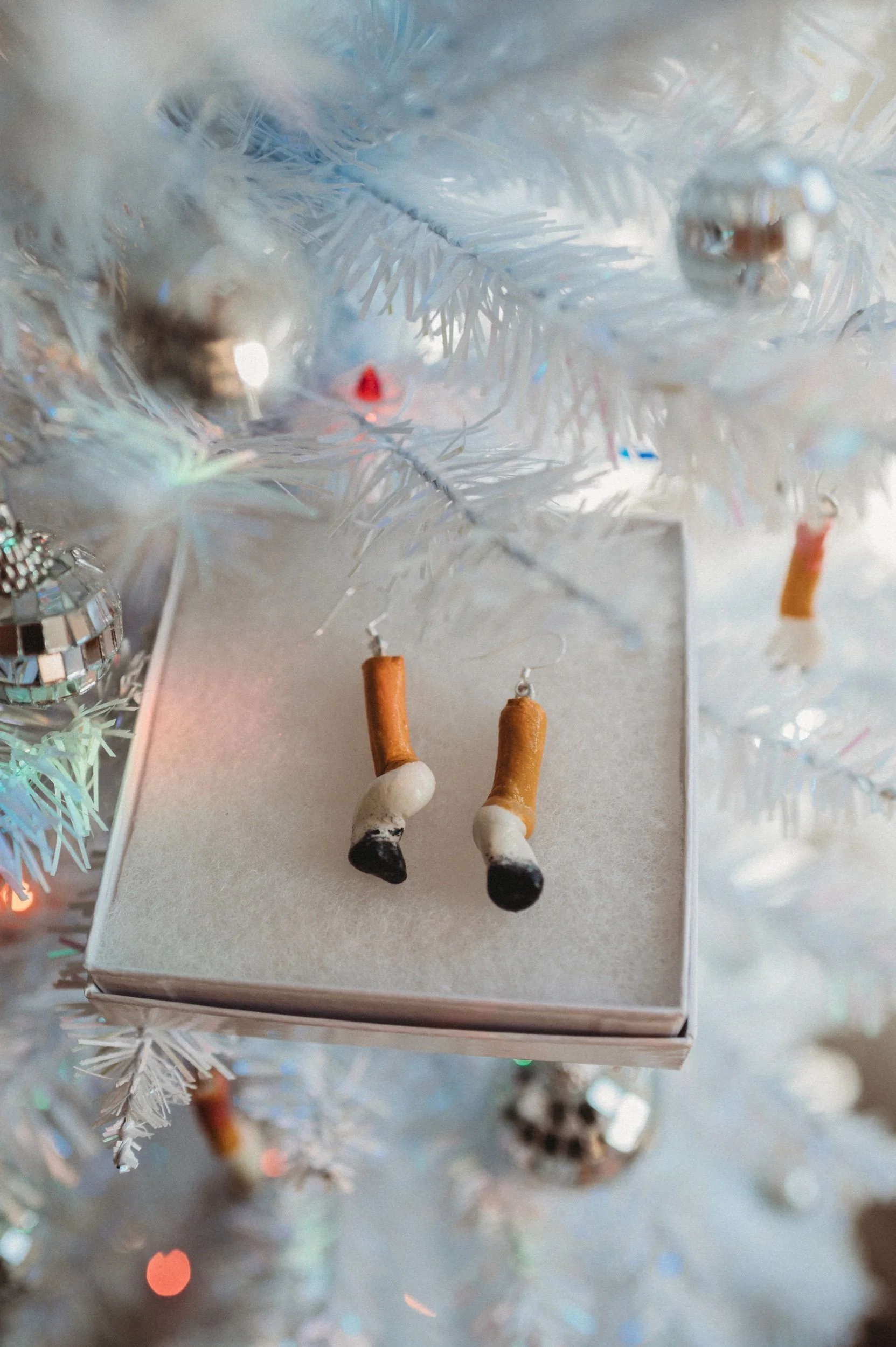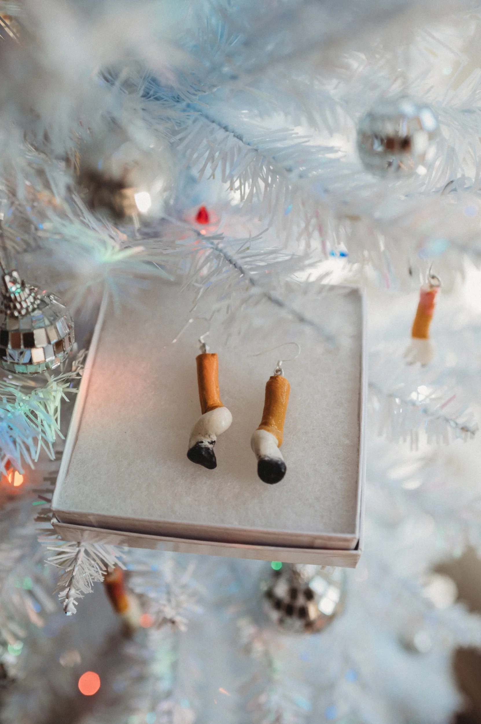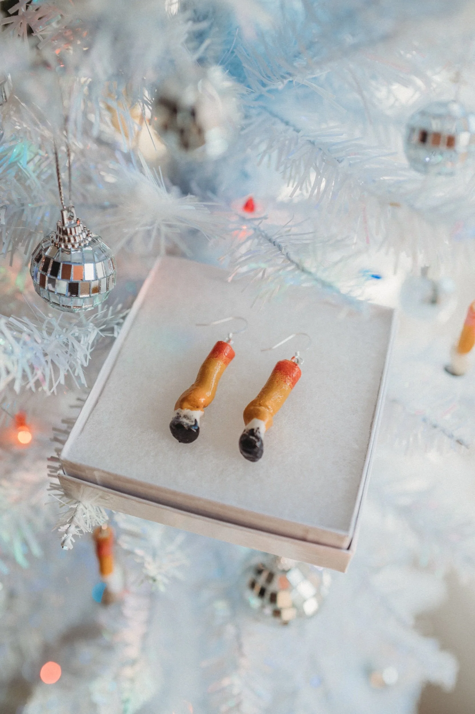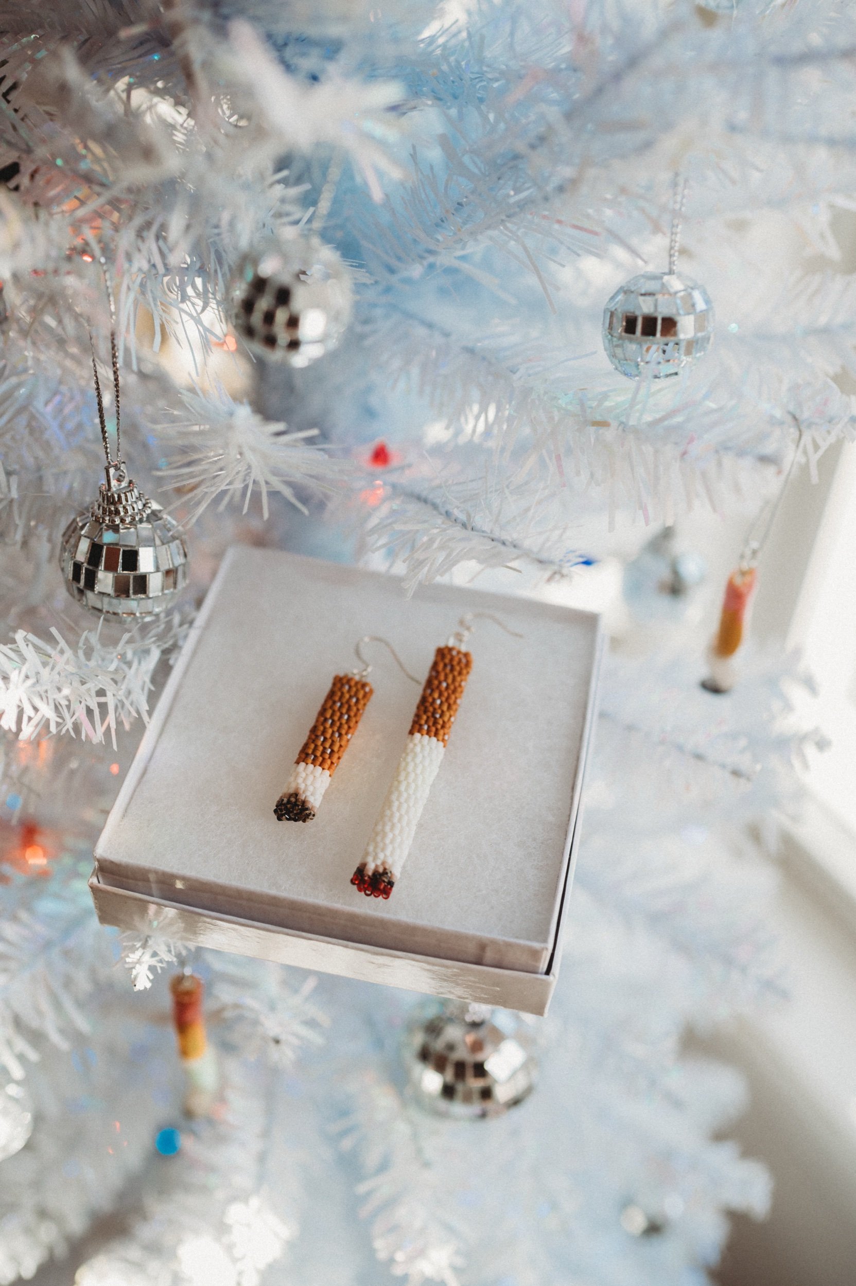 Burnt Out Cigarette Earrings with Red Lipstick Stain